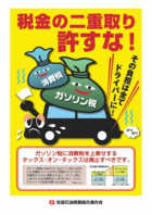 全石連は、「タックス・オン・タックスの廃止」に向けて、ドライバーへの周知を徹底するために、店頭表示用のポスターを作成し、平成24年1月13日(金)のぜんせき新聞に添付して、全国の組合員に配付しております。